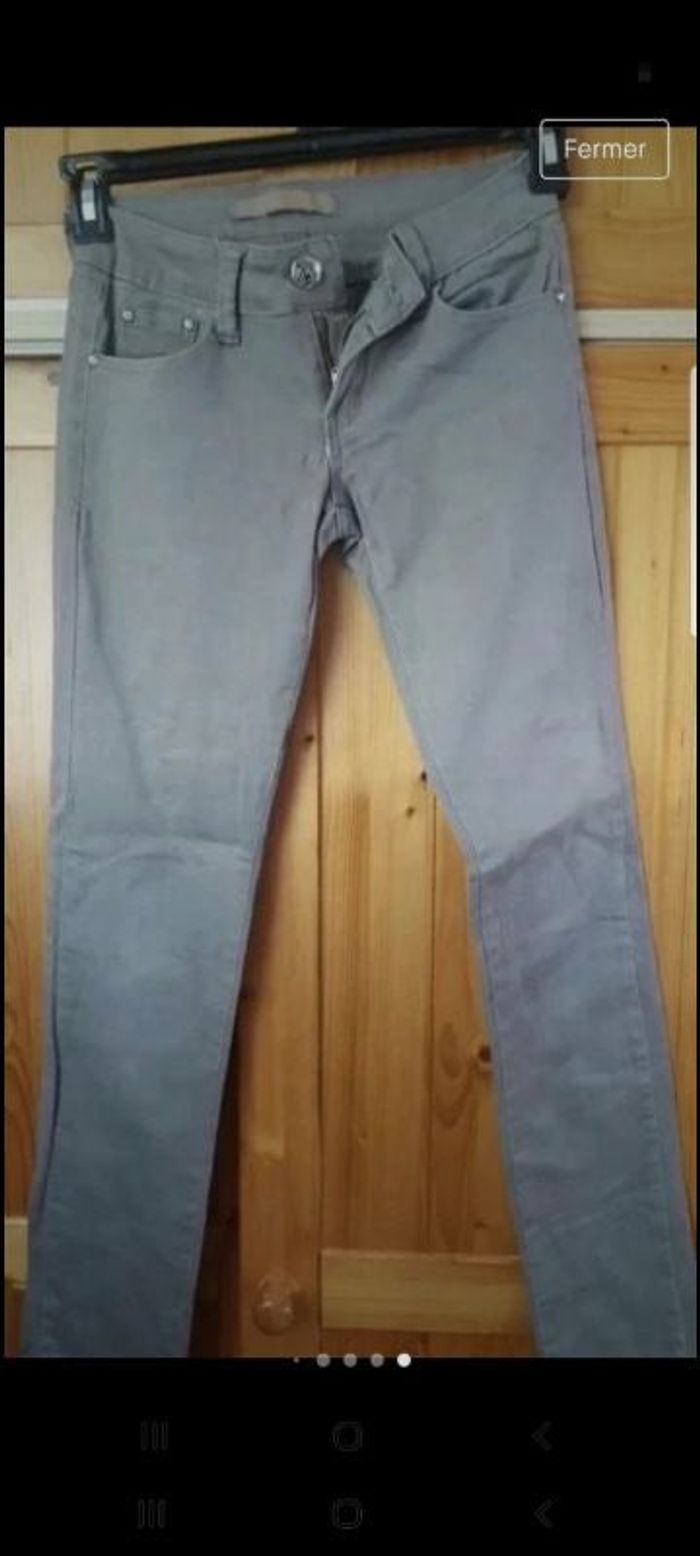 Couleur marron clair. Contient de l elasthane. Petits noeuds sur poches arrières . Marque : miss.RJ