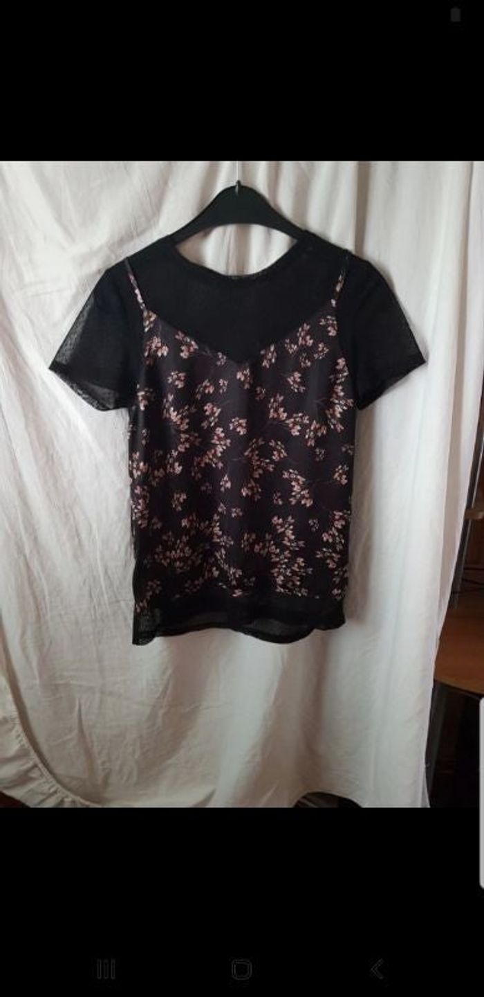 Tee-shirt aspect debardeur. Manches et haut poitrine transparent.
