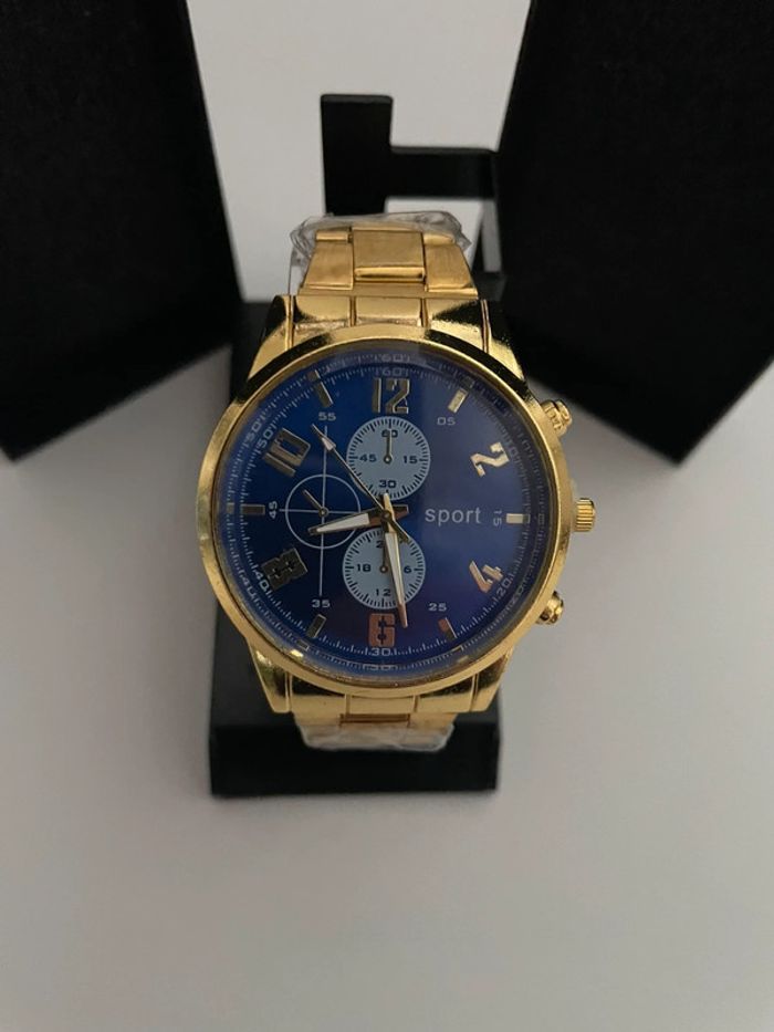 Montre homme couleur or cadran bleu