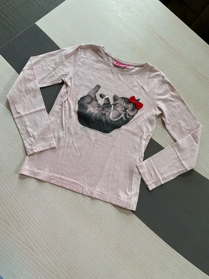 Taille petit donc 8 ans et non 10 ans Manches longues Motif chat avec strass et noeud Coloris rose passée #thol70fille8ans