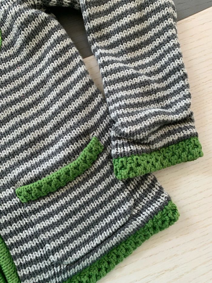 Gilet à capuche rayé gris  vert 7 ans Sergent Major - photo numéro 3