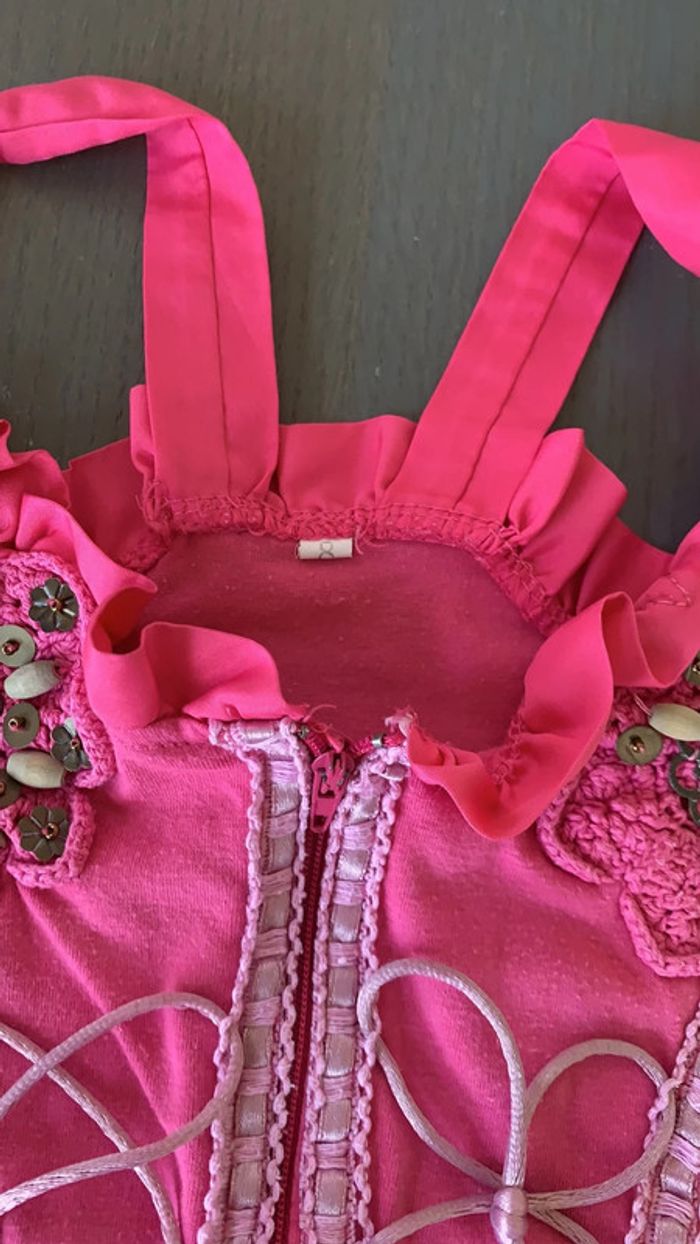 Peut être portée comme robe à 6 ans puis en tunique à 8 ans Laçage au niveau du buste Bretelles réglables Perles (en manques quelqu unes , strass et tulle) #thol70fille6ans #thol70fille8ans
