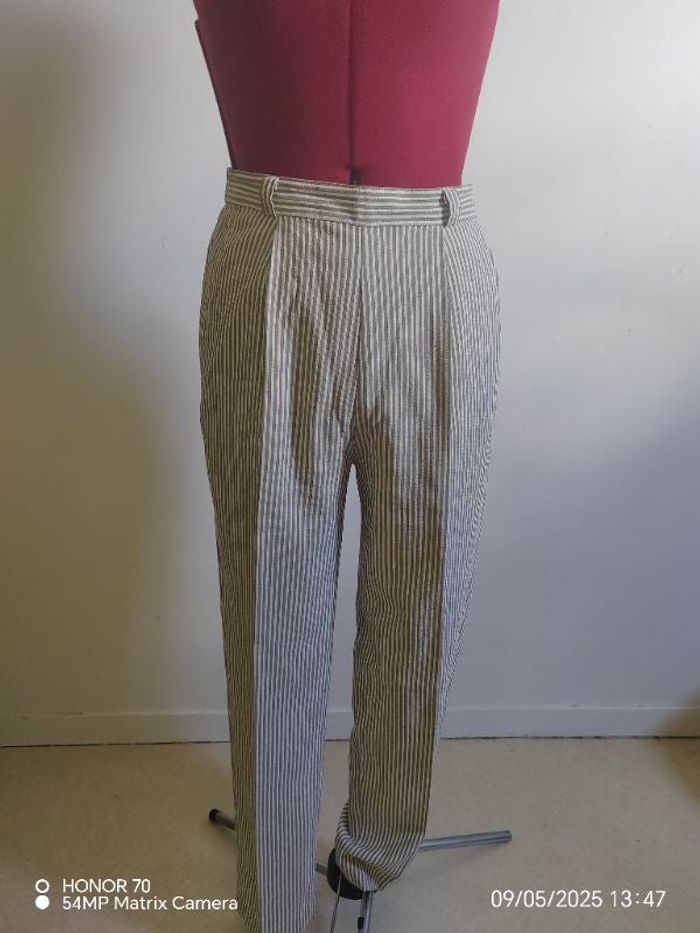 Peu porté Raye beige et blanc Poches sur les cotes Elastique a la taille de 35 cm a 45 cm a plat Longueur totale 100cm Longueur entre jambe nombril 33cm Taille haute #geliscyrilletailleM #geliscyrilletaille38 ##caisse5
