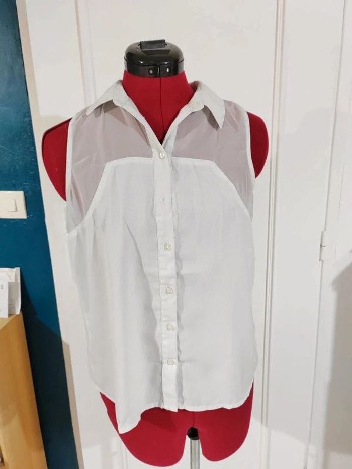 Peu porté en voile sur le haut et dans le dos. Largeur à plat sous les aisselles 47 cm Largeur bas du top 52 cm Longueur 57 cm #geliscyrilletailleS #geliscyrilletaille36 ##caisse6