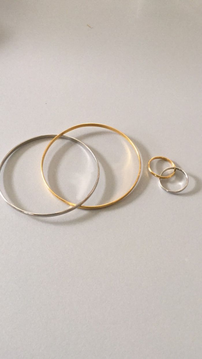 Parure bracelet et bagues 2 anneaux