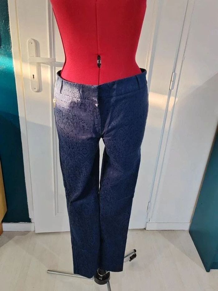 Pantalon 7/8 Porté une saison Longueur entre jambe cheville 71 cm Largeur taille a.plat 41 cm Fausse poche sur le devant et derrière Matière extensible #geliscyrilletaille40 #geliscyrilletailleL Réf :CAISSE16bis/ pantacourt 9