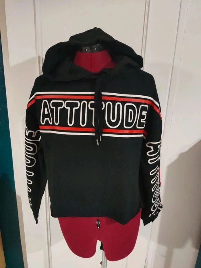 Porté une saison Effet déchiré sur le bas. A capuche Largeur à plat sous les aisselles 55cm Longueur 46 cm #geliscyrilletailleXS #geliscyrilletaille34 ##caisse18