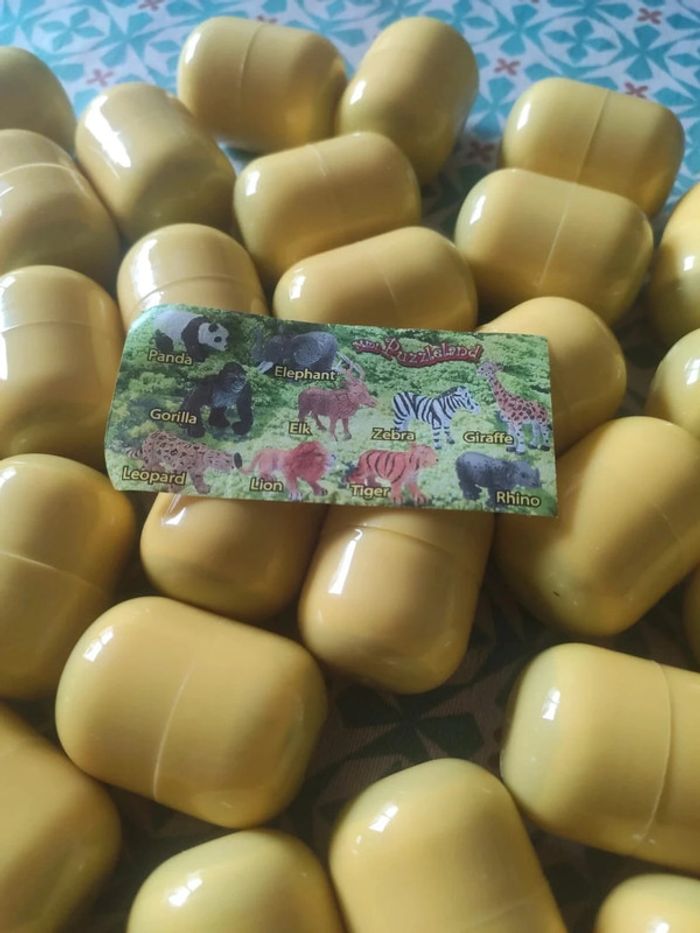 Les boules ressemblent à celles des kinder mais ce n'est pas un produit officiel Kinder. Idéal pour une fête d'anniversaire ! Attention toutes les boules contiennent les animaux en photo, il n'y a pas plusieurs collections différentes a priori. 10 animaux de la jungle possible. Je joins a l'envoi des boules vides si vous voulez y mettre vos propres petits cadeaux #vulariJeux