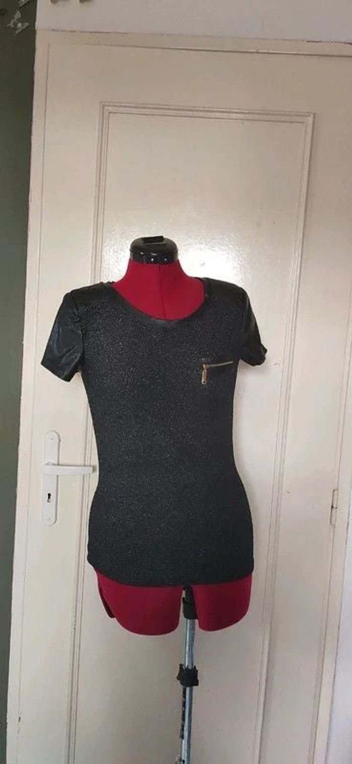 Matière extensible Très peu porté Simili cuir sur les épaules. Largeur aisselles a aisselles a plat 41 cm Pas d'etiquette de taille mais correspond à une taille S Epaulettes MARQUE GIORGIA #geliscyrilletailleS #geliscyrilletaille36 ##caisse19