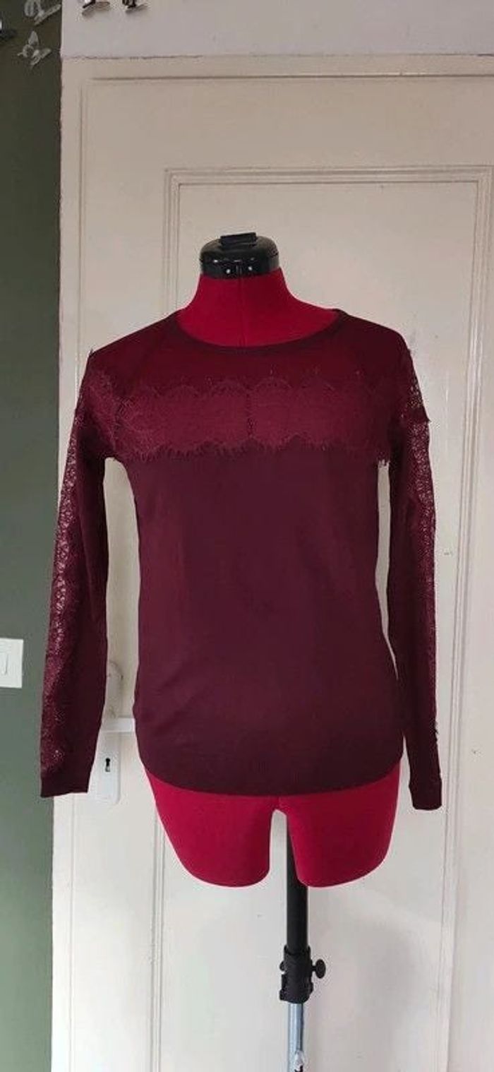 Dentelle sur les manches et sur le haut du pull Très doux Porté une ou deux fois #geliscyrilletaille34 #geliscyrilletailleXS ##caisse19