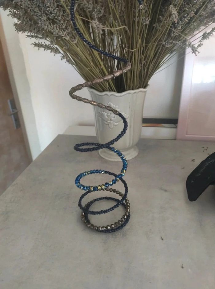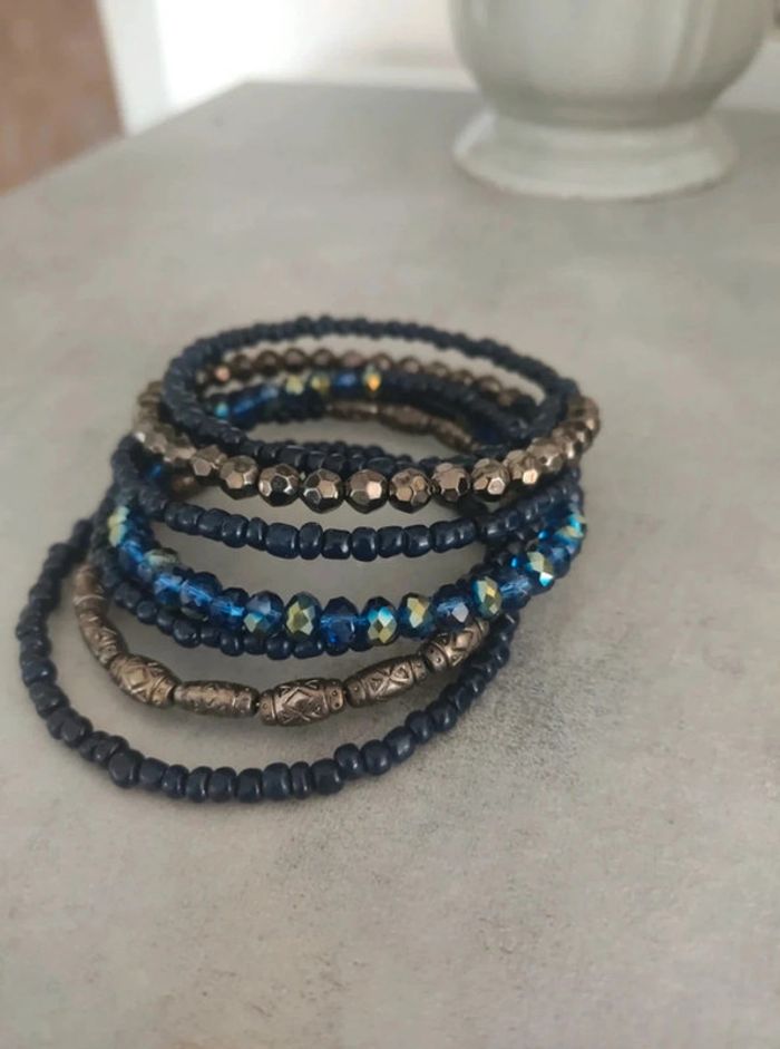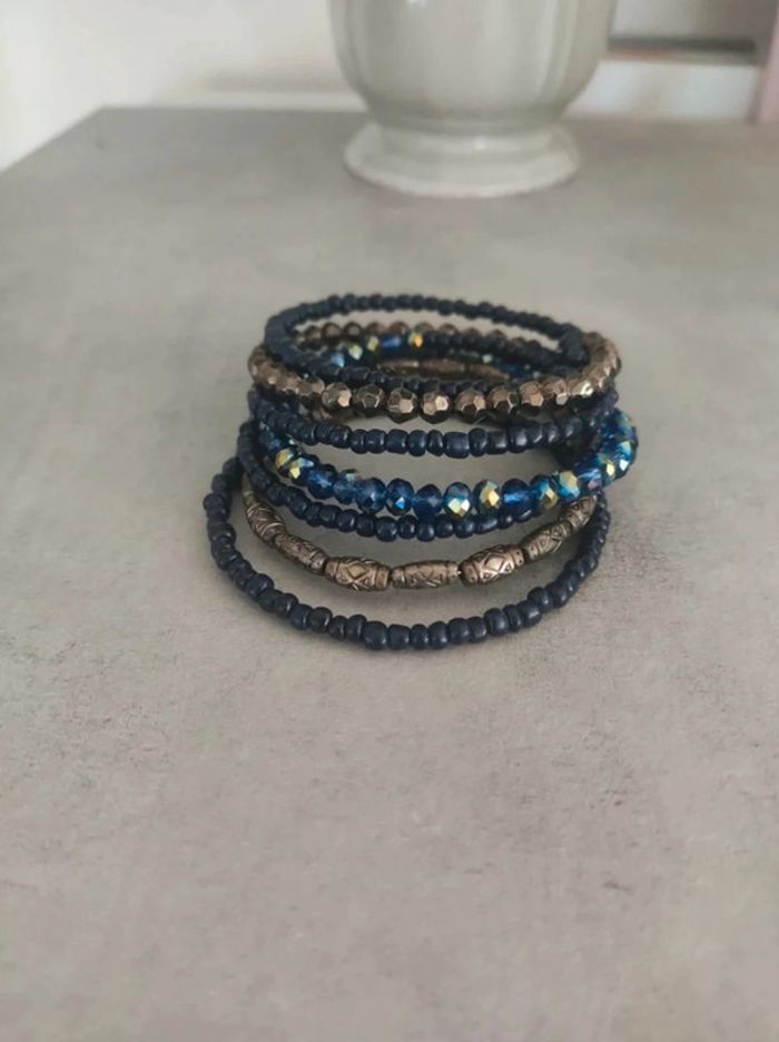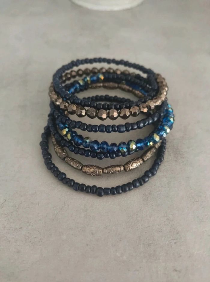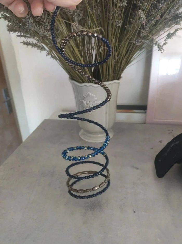Bracelet torsadé, effet bracelet de 6 à 7 rangs. Je ne sais pas comment expliquer, regardez les photos... Perles bleu marine et argenté. Neuf, jamais porté. #vulariBijoux