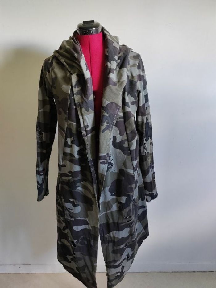 Effet déchiré Peu porté À czpuche Matière extensible Ne se ferme pas Largeur à plat sous les aisselles environ 51 cm Longueur 92 cm Poches sur les côtés #geliscyrilletailleunique #geliscyrilletailleM #geliscyrilletailleL #geliscyrilletailleXL #geliscyrilletailleS #geliscyrilletaille36 #geliscyrilletaille38 #geliscyrilletaille40 #geliscyrilletaille42 Refcaisse16bis