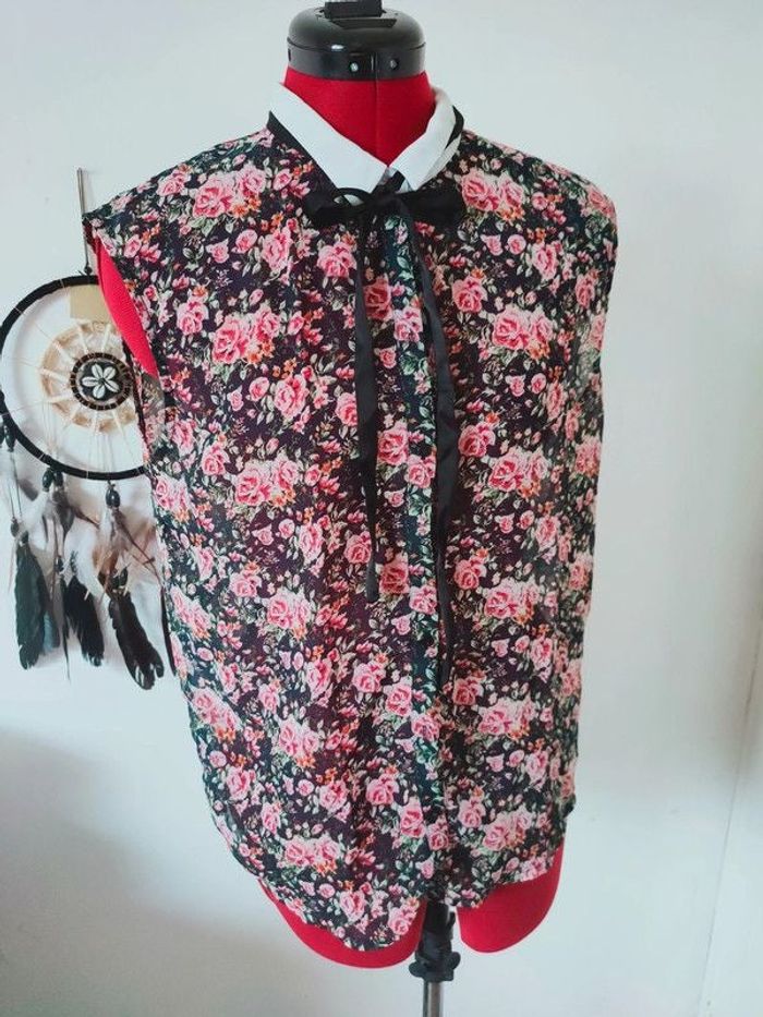 Pas d'étiquette de taille mais correspond à une taille M Petit chemisier sans manche en voile léger peu porté Largeur à plat sous les aisselles 51 cm Largeur épaule 43 cm #geliscyrilletailleM #geliscyrilletaille38 #refcaisse10/:8/Tuniques 40