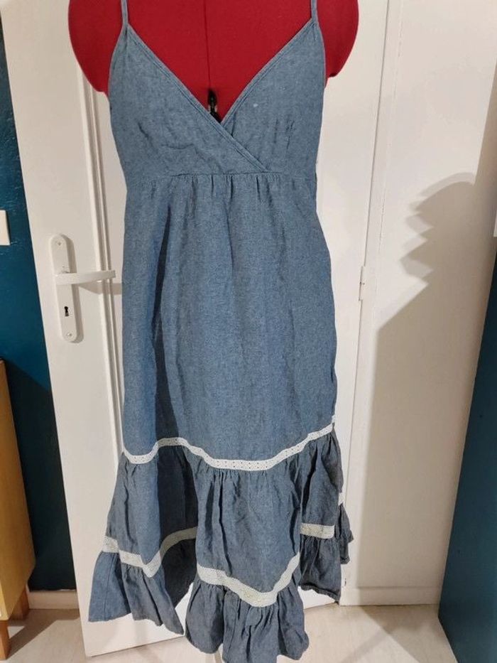 Longueur au dessous mi mollet environ Peu portée Largeur à plat sous les aisselles 41 cm Bretelles réglable Longueur de la fermeture jusqu'au bas de la robe 84 cm Matière légèrement extensible Fermeture éclair invisible sur le côté Petite usure au niveau de la poitrine a gauche voir photo (je mettais une épingle pour fermer un peu le décolleté) #geliscyrilletaille38 #geliscyrilletailleM ##CAISSE32