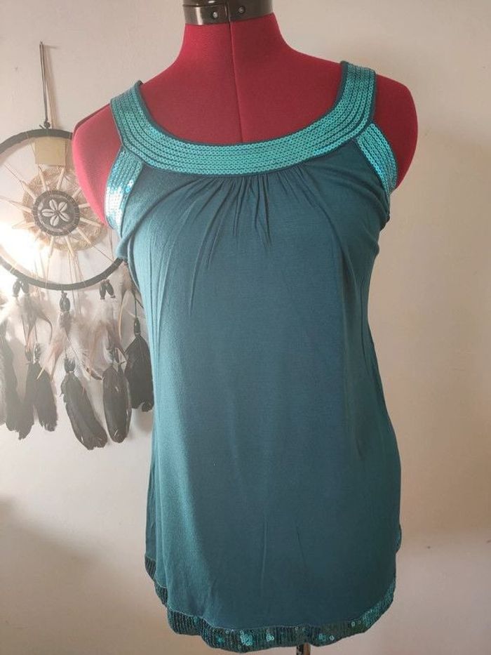 Porte une fois Paillettes Matière extensible Longueur totale 77 cm Largeur sous les aisselles 41 cm Taille s/m #geliscyrilletailleS #geliscyrilletailleM #geliscyrilletaille36 #geliscyrilletaille38 ##CAISSE8