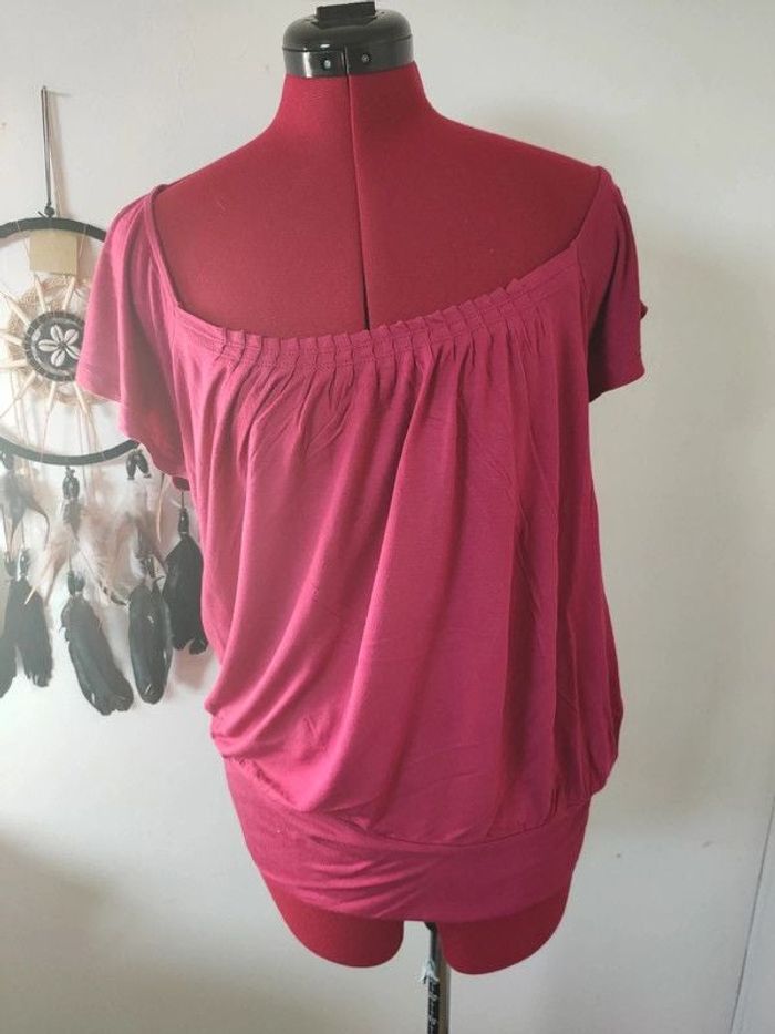 Resserré au niveau de la taille Peu porté Matière fluide et agréable à porter Extensible Largeur à plat sous les aisselles 53 cm Largeur bas du top 47 cm Longueur 70 cm #geliscyrilletailleM #geliscyrilletaille38 ##caisse8
