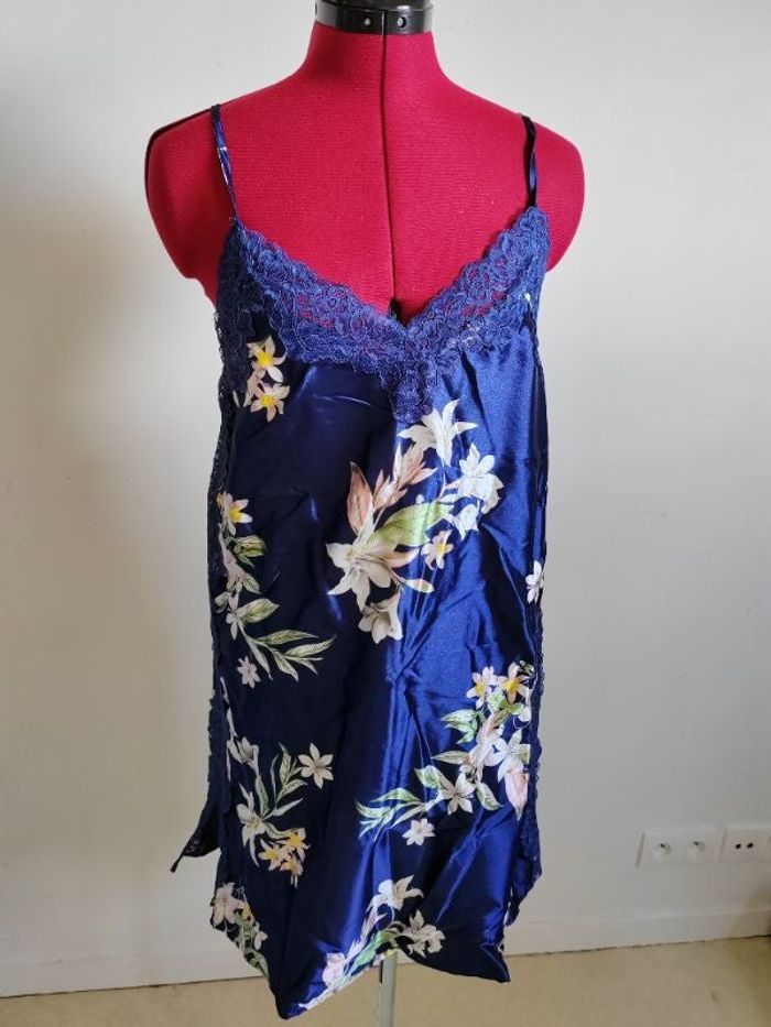 élastique et au niveau du dos matière fluide et légère largeur à plat sous les aisselles de 45 cm à 51 cm longueur sous l'aisselle bas de la chemise 66 cm bretelles réglable fente sur les côtés Marque dyana intimates #geliscyrilletaille40 #geliscyrilletailleL Refapp22