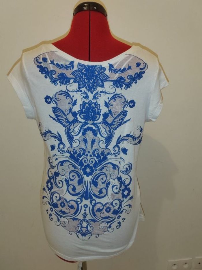 Imprimé dans le dos avec des zones légèrement transparentes Matière extensible Jamais porté #geliscyrilletailleM #geliscyrilletaille38 Refapp22