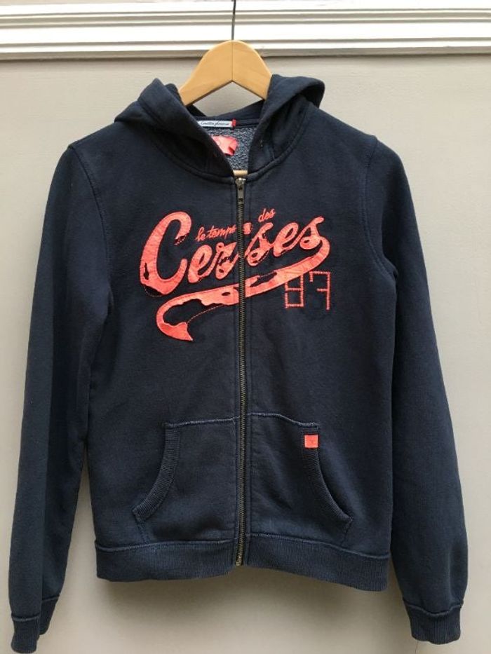 Gilet zippé à capuche bleu marine Le temps des Cerises 12 ans Taille assez grand Manque le cordon de la capuche