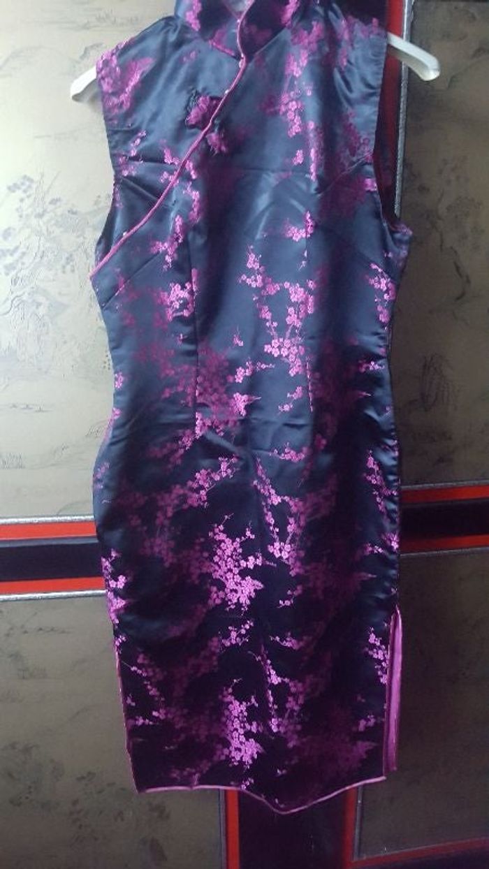robe noire motif florale fushia . xl. très bon état porté moins de 5 fois. Voir mes autres ventes frais de port au plus juste et réduction pour lot possible .