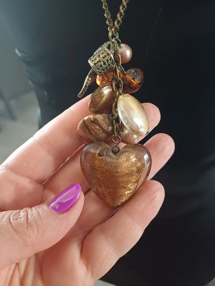 Sautoir marron, Nœud et coeur