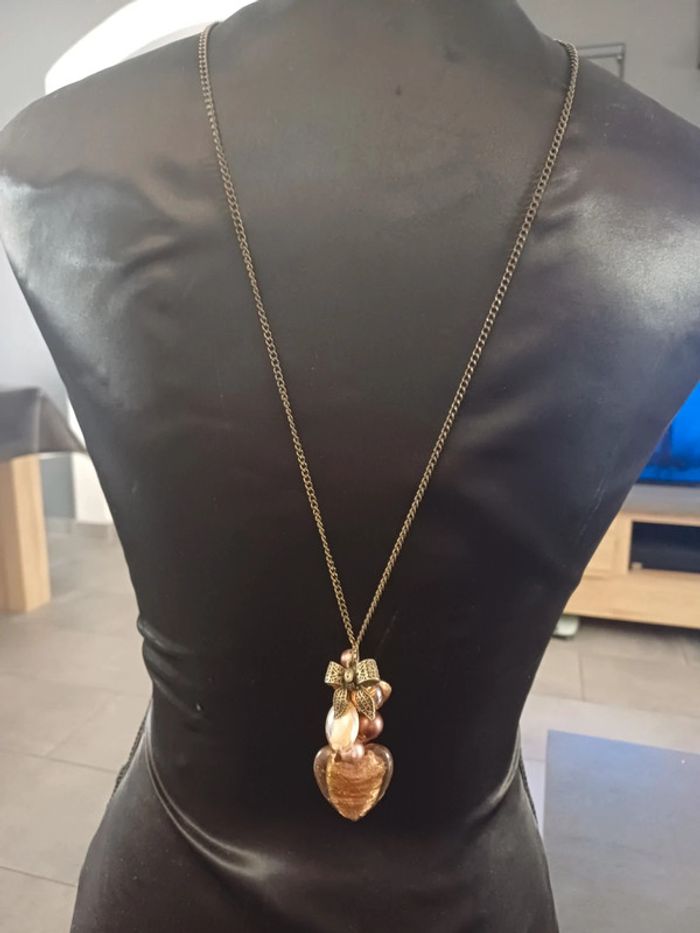Sautoir marron, Nœud et coeur - photo numéro 2