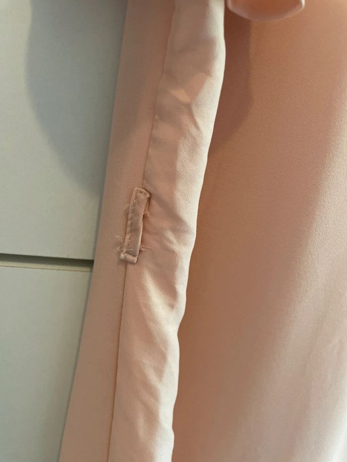 Robe fluide rose poudré Tallle M avec 99 cm de long et 49,5 cm de large Il manque la ceinture d’où le petit prix
