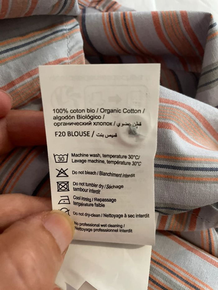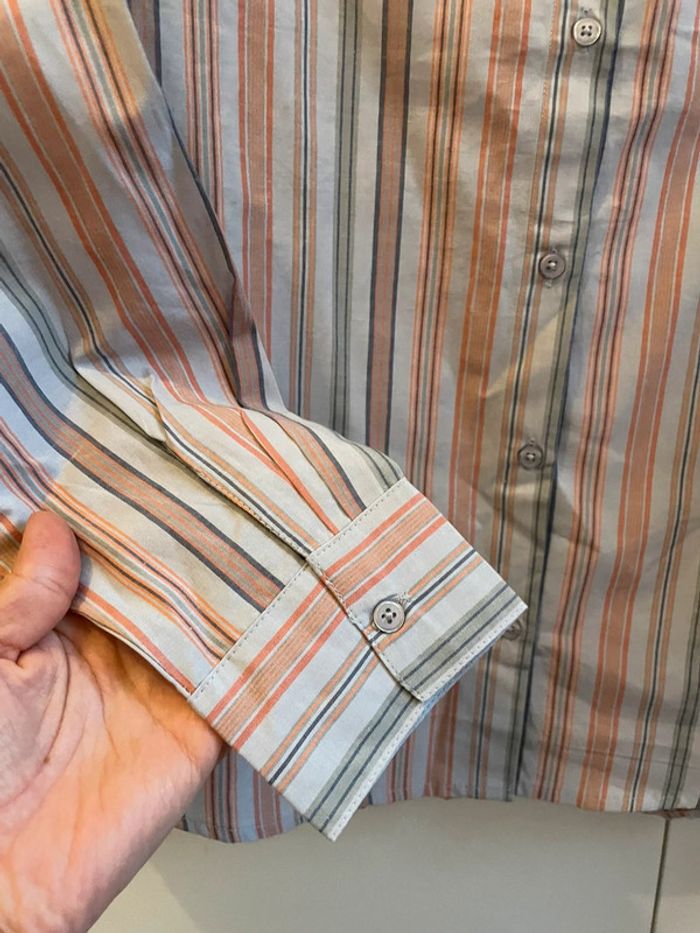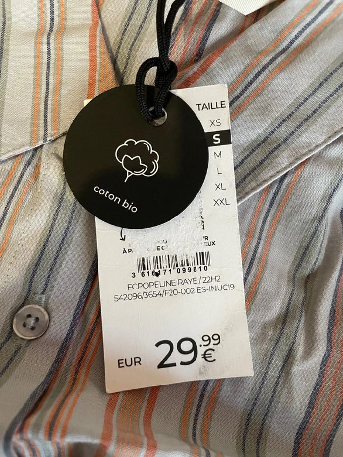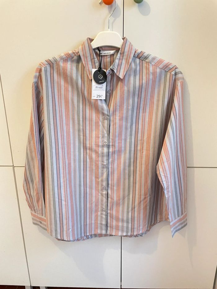 Chemise rayée bleu/corail neuve de la marque Camaïeu En coton bio Taille S avec 62 cm aisselles à aisselle 72 cm de long Lot possible avec d’autres articles Envoi rapide et soigné
