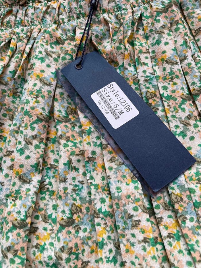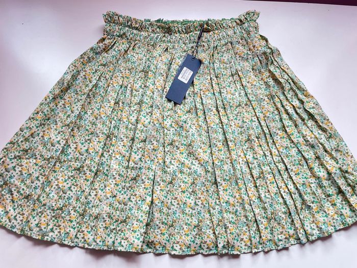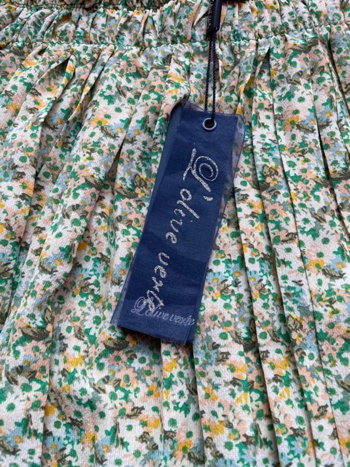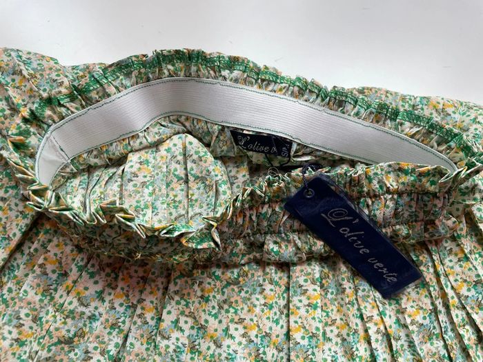 Jolie jupe fleurie de la marque L’olive verte Taille S/M car élastique important à la taille Sans tirer dessus il y a 32cm Et 46 cm de longueur Nombreux articles disponibles pour créer un lot
