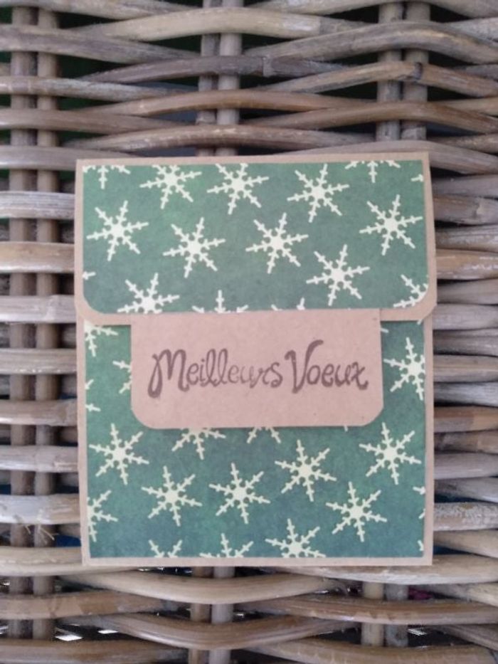 Carte cadeau Noël Se ferme avec un scratch Une fente intérieure pour glisser une étrennes (chèque ou billet). Un carré blanc pour mettre un message.