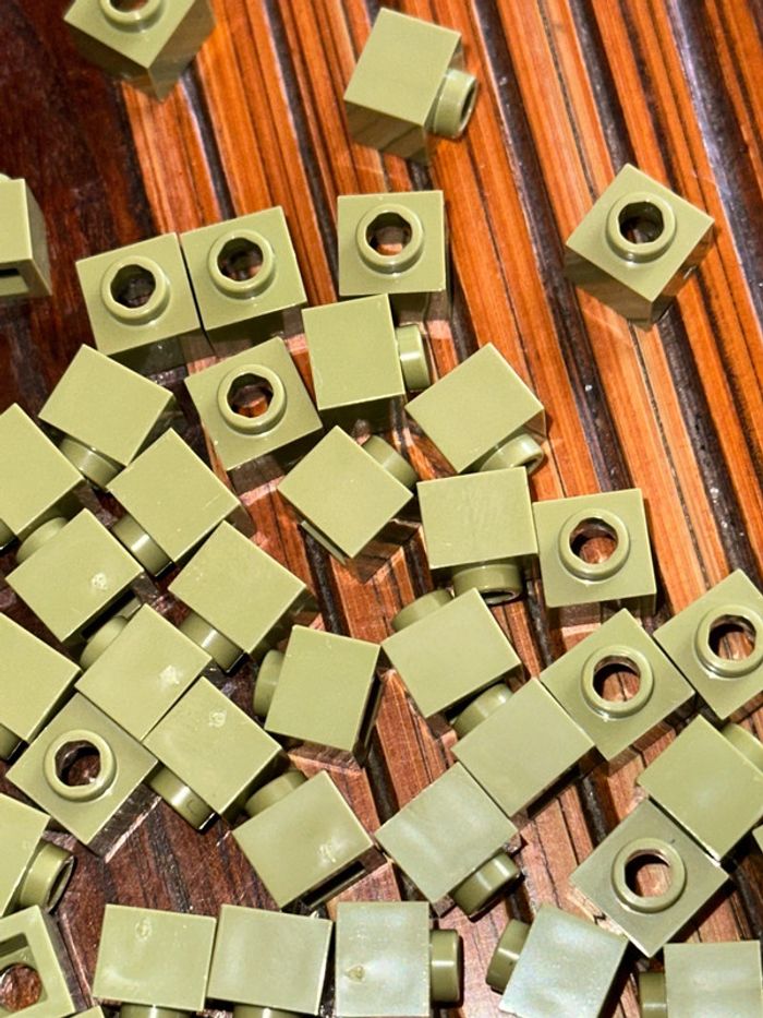 50 Brick Lego , Modified 1 x 1 x 2/3 with Open Stud Ref 86996 Olive Green
