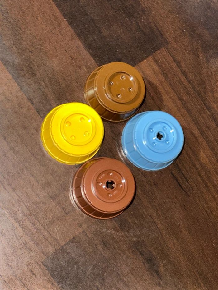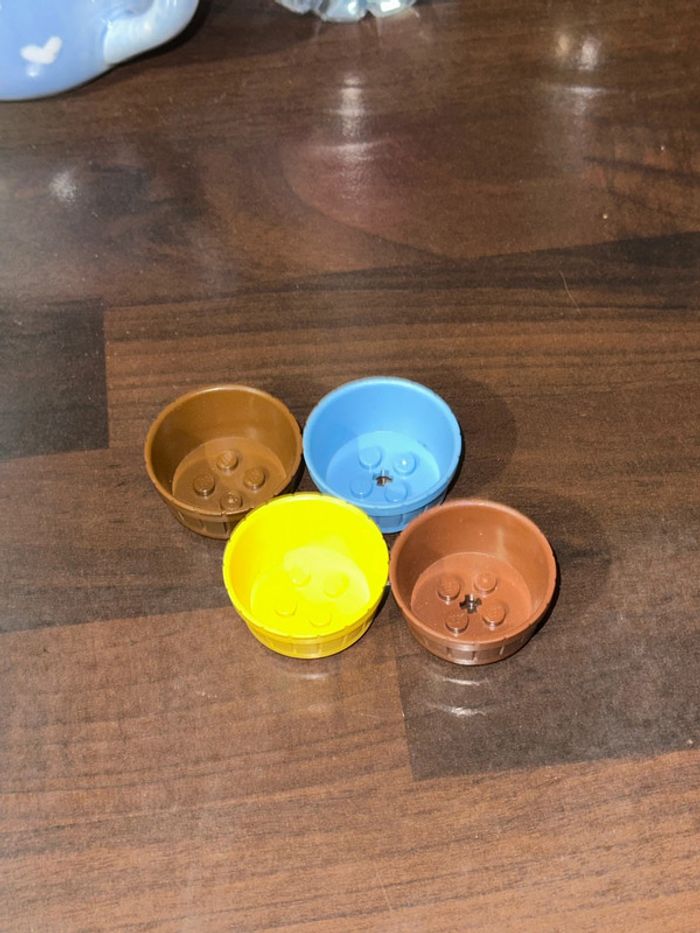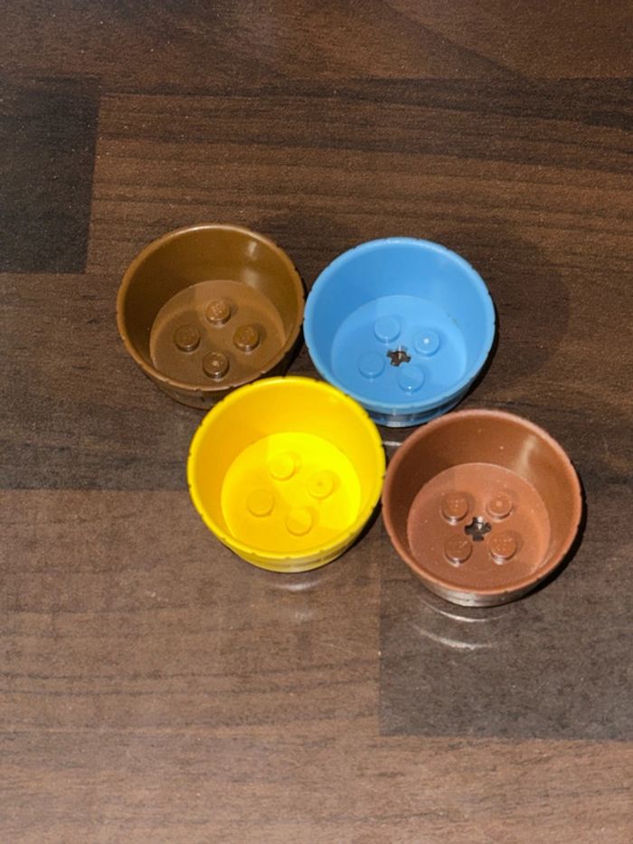 4 Container Lego , Barrel Half Large with Axle Hole 4 couleurs