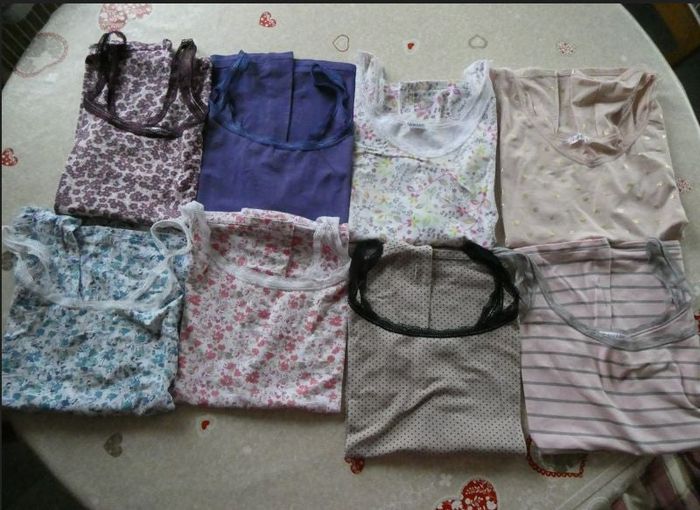 Lot de 8 caracos marque "Damart". Matière : coton. Taille : XL (correspond à un 50/52). Certains caracos ont été portés 2 fois et certains sont neufs. Valeur neuve d'un caraco : 22 € Photos supplémentaire sur demande Très bon état à neuf sans étiquette Prix du lot : 60€