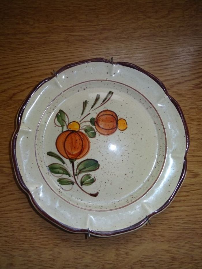 Assiette en céramique avec suspension. Décor floral réalisé à la main. Diamètre de l'assiette : 22 cm. Très bon état. Prix : 3€