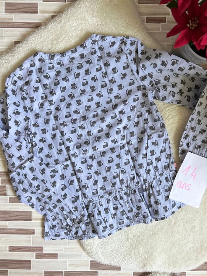 Chemise avec motif chat dessus Marque sergent major Taille 14 ans En très bon état #charlinelolfille14ans N’hésitez pas si vous avez des questions