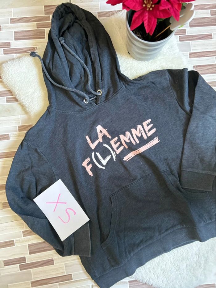 Sweet gris avec inscription la flemme Marque follow me Taille XS En très bon état #charlinefemmeXS #charlinelolfille14ans N’hésitez pas si vous avez des questions