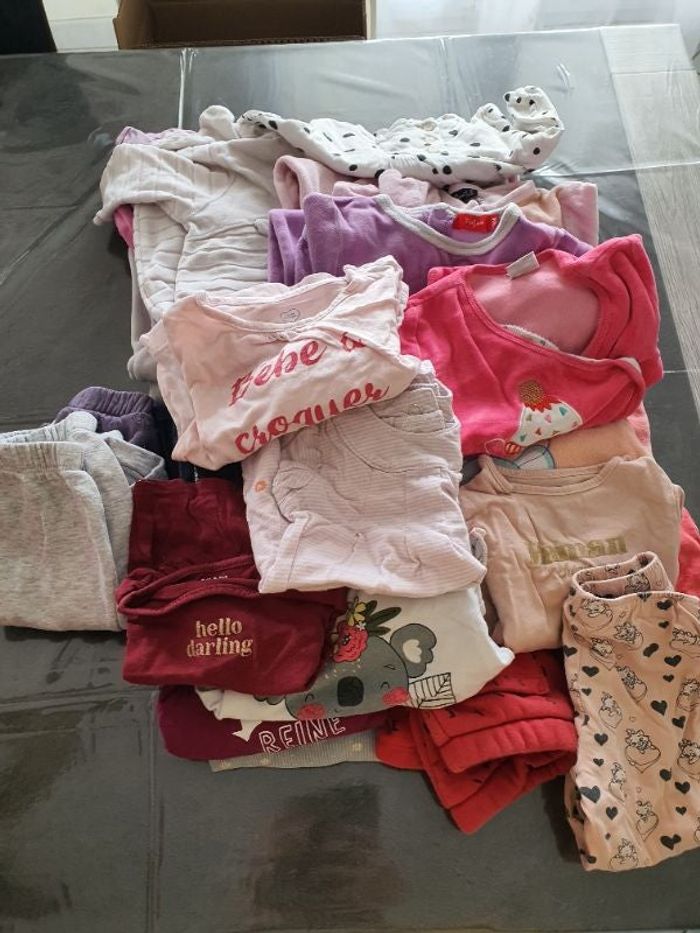 Lot de 40 vêtements Comprenant: Tee-shirt, robe, leggings, dors bien Taille 9 mois Très bon état
