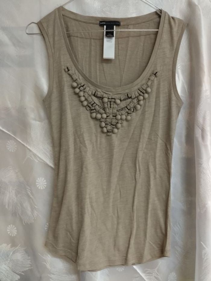 Débardeur maille coton, avec motifs poitrine en perles de coton. Taille M de chez Mango casual