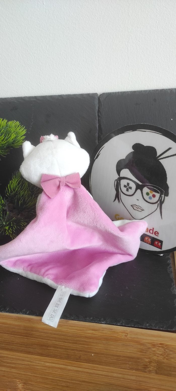 Doudou plat chat Marie rose blanc Aristochats disney nicotoy noeud Bleu Mouchoir - photo numéro 1