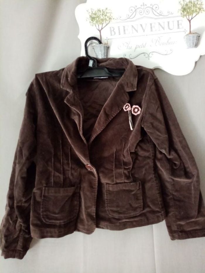 Veste velours Fermeture par 1 bouton 2 poches sur le devant Fleur en crochet Marque amstramgran Bon état