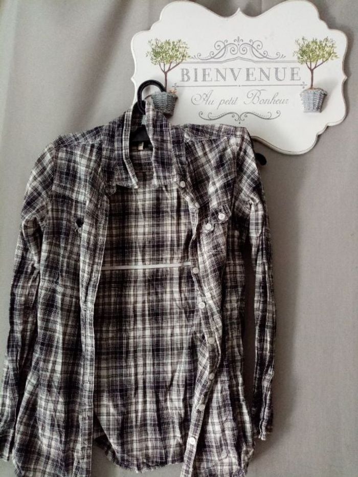 Chemise manches longues pouvant etre mises en manches courtes Cintree a la taille Fermeture par boutons Marque spot 2 poches poitrine