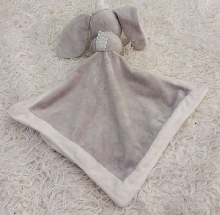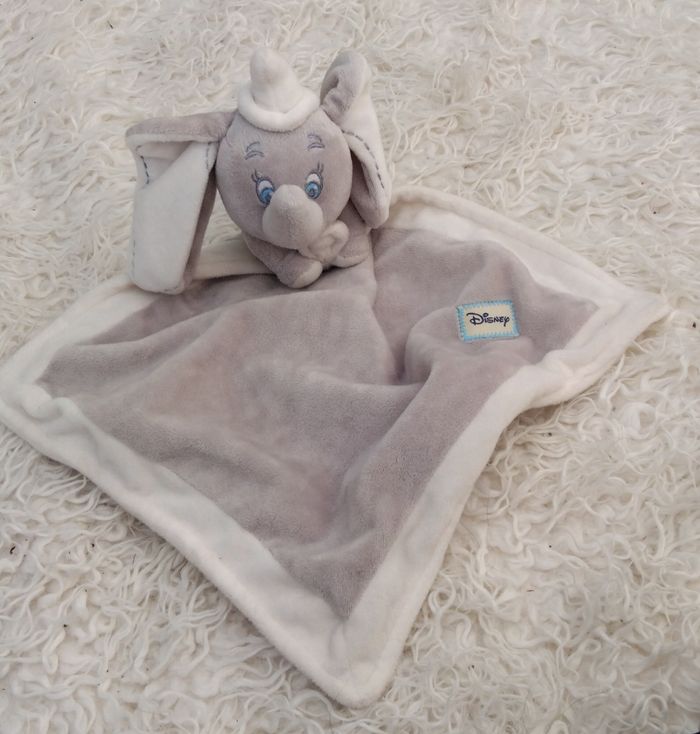 Grand doudou plat éléphant Dumbo en velours de couleur gris