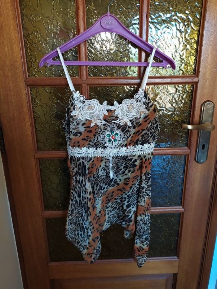 Débardeur imprimé animal avec broderies. Bretelles réglables