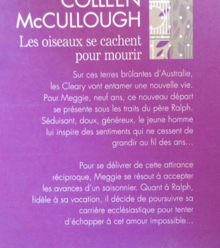 LES OISEAUX SE CACHENT POUR MOURIR de Colleen McCULLOUGH Ed. Poche France Loisirs Très bon état, comme neuf Résumé en photo n°2