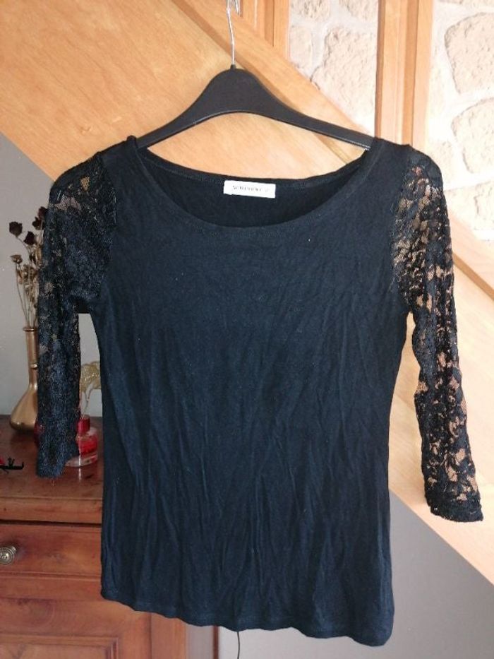 Tee shirt manches 3/4, dentelle noire