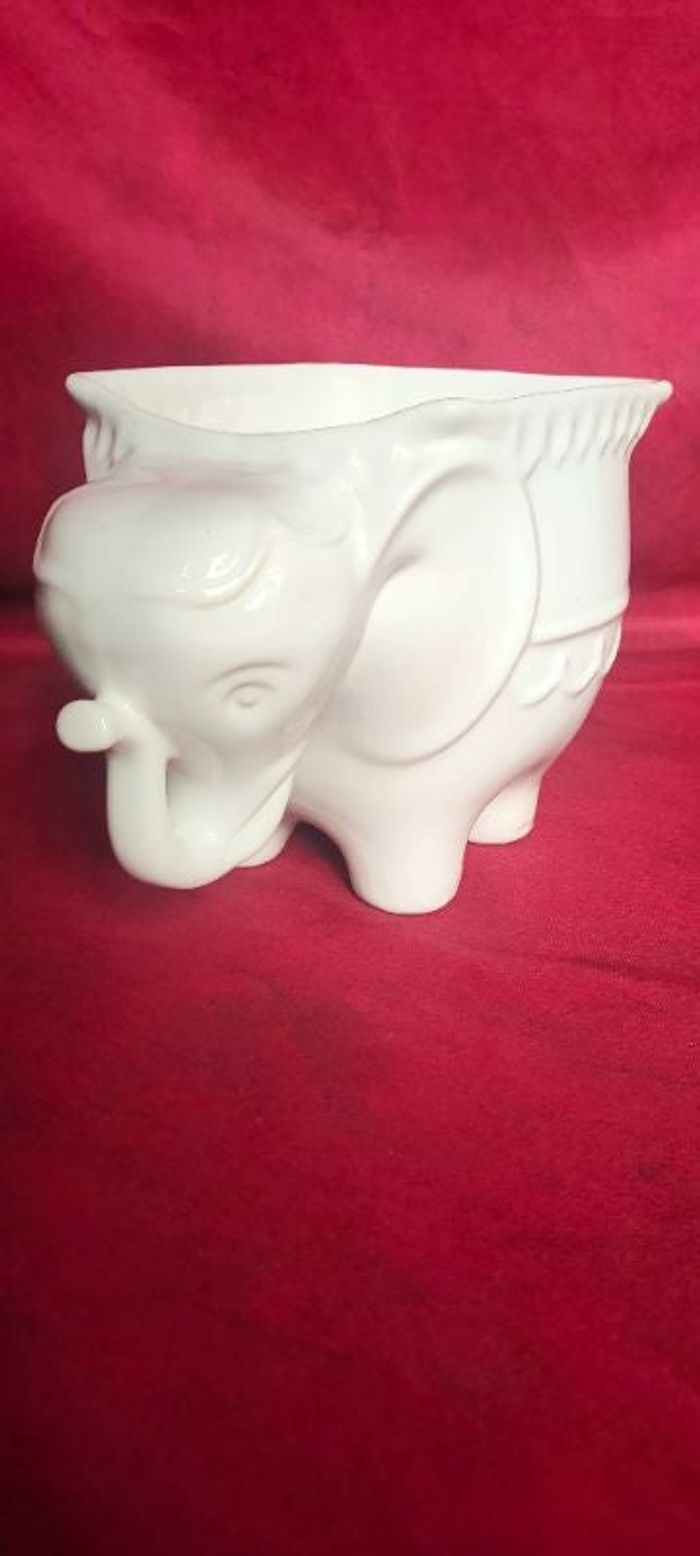 Vends cache pot blanc éléphant en faïence (n°15) longueur 25 cm , largeur 16 cm , hauteur 18 cm