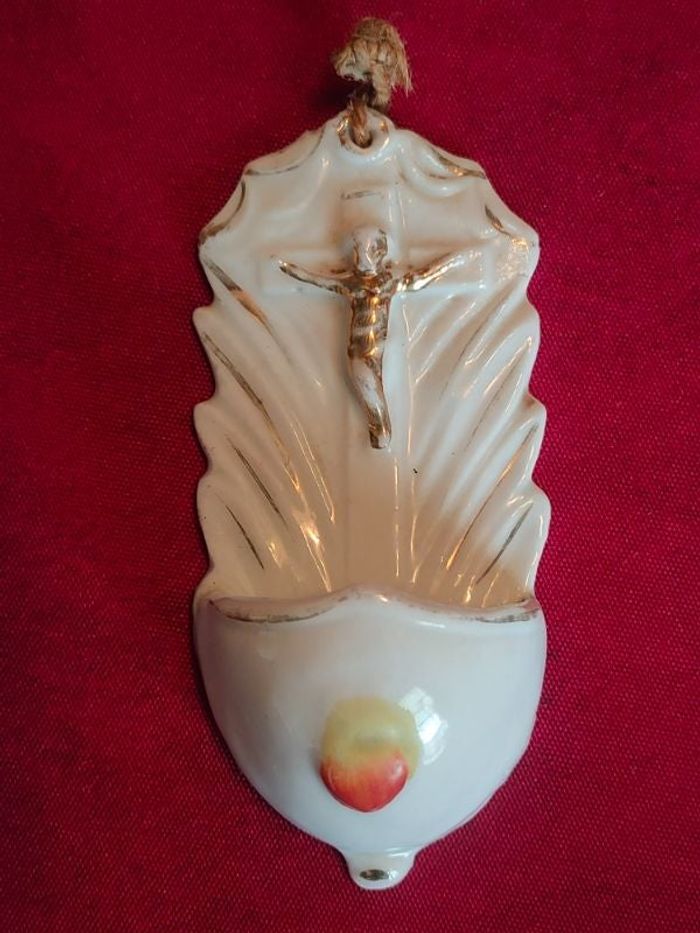Vends ancien bénitier en biscuit sacré-coeur de jésus, hauteur 9 cm, largeur 4,5cm