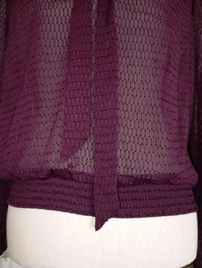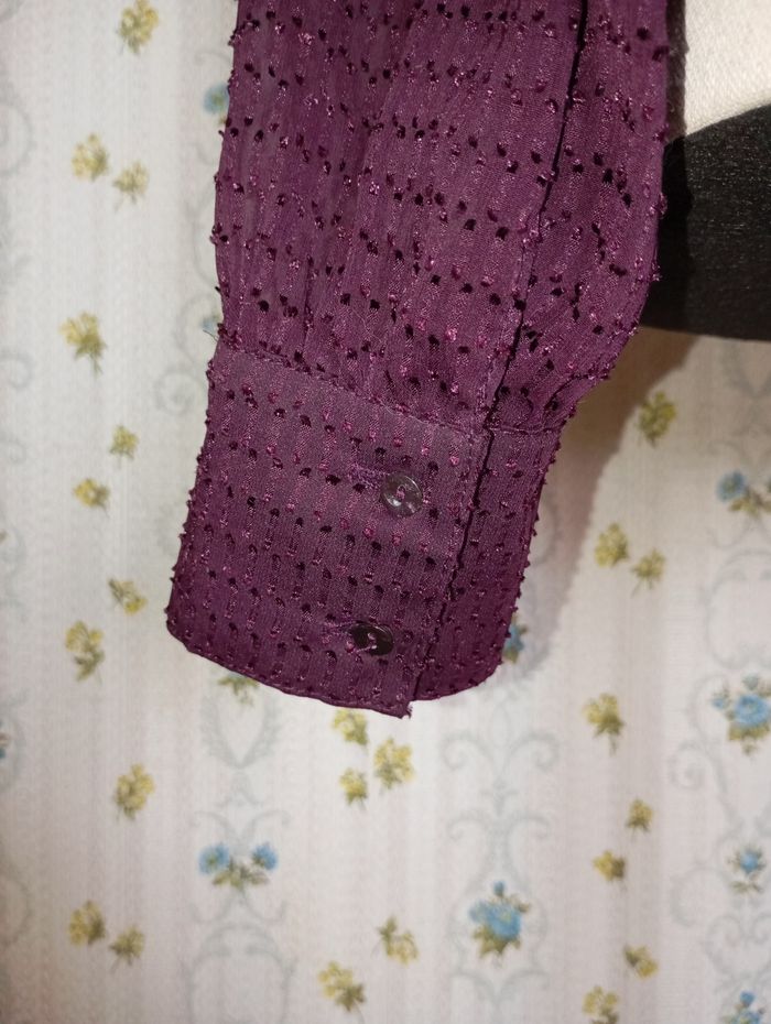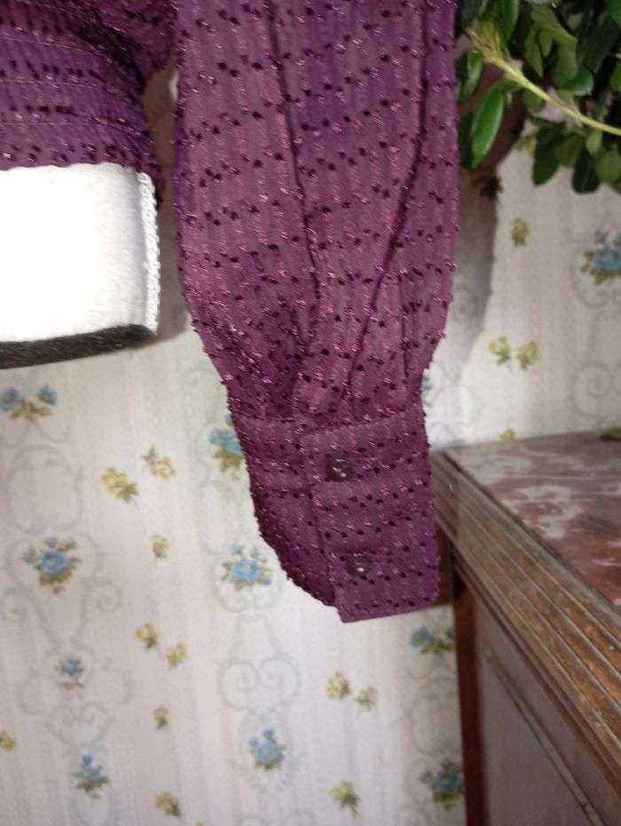 Blouse lavallière Camaïeu Blouse col lavallière plumetis femme Couleur : SURNATUREL Taille : 36 Porté 1 fois. Chemise / blouse couleur violet foncé aubergine Fluide, large au niveau du corps et des bras un peu "bouffante" puis resserré aux extrémités (poignets avec boutons, taille élastique) Elle est splendide, fait très habillé/ classe, elle donne un super look. #look #casual #chic #summer #ete #printemps #leger #somptueux