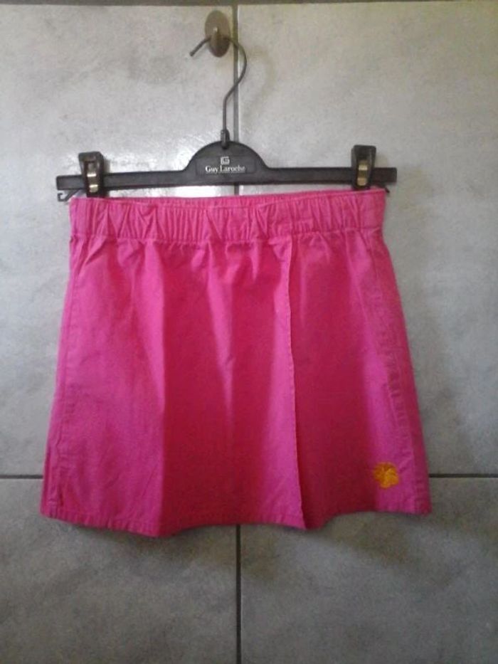 Jupe H&M rose unie – 6/7A - Forme portefeuille – Taille élastique- Broderie fleur jaune au bas- 100% coton – TBE