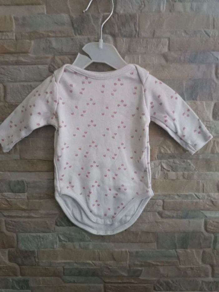 Lot 5 bodys 3M - 1, body FCP, blanc à feuilles roses - 2, body FCP, rose petite souris - 3, body blanc "Wake up Daddy" - 4, body blanc "Wake up Mummy" - 5, body blanc Brioche - 100% coton - TBE